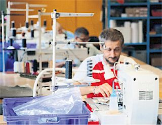 Eine SEV-Delegation, bestehend aus Präsident Giorgio Tuti, Regionalsekretärin Françoise Gehring und Gewerkschaftssekretär Jérôme Hayoz, besuchte die Sattlerei aus einem ganz besonderen Anlass: Zurzeit werden dort für den SEV Ledertaschen hergestellt, die exklusiv im Rahmen der Werbeaktion 12-12-12 als Prämie vergeben werden (siehe Artikel auf Seite 14). Der SEV wird auch weiterhin geeignete Aufträge an Anyway Solutions vergeben, als aktiven Beitrag an die Reintegration.