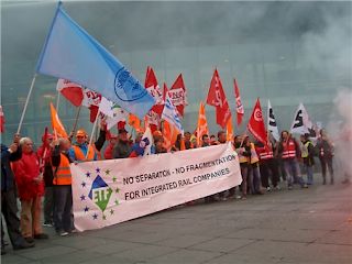 Über 150 Gewerkschafter/innen aus EU-Ländern und der Schweiz haben am 8. Oktober in Luxemburg die EU-Verkehrsminister aufgefordert, weiterhin direkte Vergaben von Bahnkonzessionen zuzulassen und für Ausschreibungen soziale Standards vorzuschreiben.