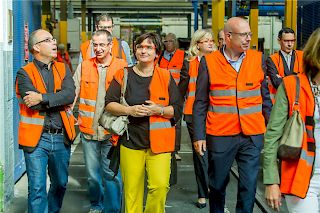 Die Parlamentarier/innen sahen sich die verschiedenen Tätigkeitsbereiche des IW an, wobei die anforderungsreiche Achsaufbereitung auf ihr besonderes Interesse stiess. In der Wagenabteilung erfuhren sie, dass im Sommer vom Hauptkunden SBB Cargo erheblich weniger Aufträge hereingekommen sind, weil diese SBB-Tochter bedingt durch den starken Franken weniger Güter transportieren kann und deshalb weniger Bedarf an Roll