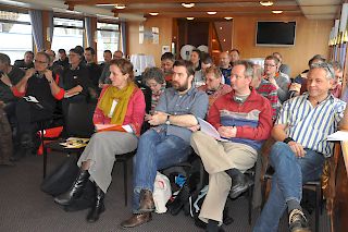 Branchenpräsident René Tschantz konnte am 3. März auf heimischem Boden bzw. auf «seinem» See über 50 Tagungsteilnehmende begrüssen, die sich durch das schlechte Wetter nicht vom Betreten des LNM-Schiffes abschrecken liessen.