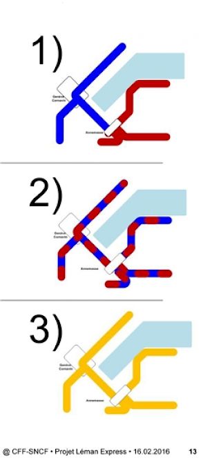 Zu den Gewerkschaften SEV und LPV Genf, CGT, VSLF und Sud Rail, die dieses Dossier seit Monaten genau verfolgen, gesellten sich beim Treffen die französischen Gewerkschaften CDFT und UNSA (Kader). Laurence Eymieu, Leiterin SNCF-Region Rhône-Alpes, und Barbara Remund, Leiterin Regionalverkehr SBB, stellten insbesondere den Zeitplan für die Umsetzung des Léman Express vor. Bis zur Inbetriebnahme des grenzüberschreitenden, 230km langen S-Bahn-Netzes müssen verschiedene Punkte geklärt werden, angefangen beim Betriebsmodell – siehe Grafik. Diese Frage ist brandaktuell, wollen die SBB und die SNCF dazu doch bis Ende August einen Entscheid treffen.