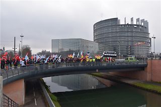 Am 13. Dezember trafen sich mehrere Hundert Vertreter/innen verschiedener Verkehrsgewerkschaften aus Europa vor dem EU-Parlament in Strasbourg. Mitten unter ihnen war auch eine sechsköpfige SEV-Delegation. Die Gewerkschafter/innen waren aus diversen europäischen Ländern zusammengekommen, um gegen die Verordnung über den Personenverkehr zu demonstrieren, die im Rahmen der Public Service Obligations (PSO) eingeführt werden soll. Diese Verordnung ist Teil der politischen Säule des vierten Eisenbahnpakets.