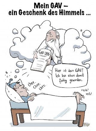 Die Erneuerung des GAV SBB / SBB Cargo ist unsere absolute Priorität im Jahr 2018. Es ist nicht unnütz, sich die Gründe dafür in Erinnerung zu rufen: Dieser GAV betrifft praktisch das ganze Personal von SBB AG und SBB Cargo AG. Und die Hälfte davon ist Mitglied im SEV. Die Verhandlungen werden geführt, während die SBB mit blindem Eifer RailFit 20/30 einführt. Wir werden Zeuge der lohnmässigen Rückstufung von Angestellten bei P-Operating (siehe Seite 16). Stellenabbau und Verschlechterung der Arbeitsbedingungen treffen das SBB-Personal mit aller Härte. Die Leitung der SBB hat angekündigt, den GAV anzugreifen, um Sparmassnah- men realisieren und die Produktivität erhöhen zu können. Um den GAV zu verteidigen, hat der SEV diesen Herbst die Kampagne «Mein GAV – ein Geschenk des Himmels» lanciert.