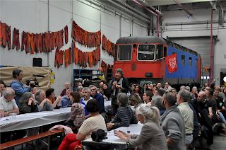 Am 5. Mai wurde der zehnjährige Geburtstag des Streiks in Anwesenheit von rund 200 Arbeitnehmenden, Angehörigen, Sympathisanten und Vertretern der politischen Behörden – darunter Bellinzonas Bürgermeister Mario Branda – gefeiert. In einer Diskussion über die Gegenwart und Zukunft des Werks ging der Verein «Hände weg von den Officine» vertieft auf das letzte Treffen der «Plattform» ein und präsentierte folgende Zahlen: Am neuen Standort werde sich das Arbeitsvolumen von aktuell 345000 auf 200000 Stunden fast halbieren. Was das Personal aber am meisten beschäftige, sei die Übergangsphase, insbesondere die Zeit zwischen 2023 und 2027.