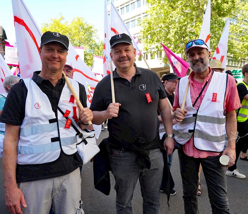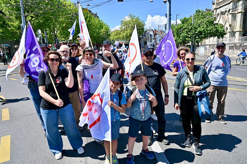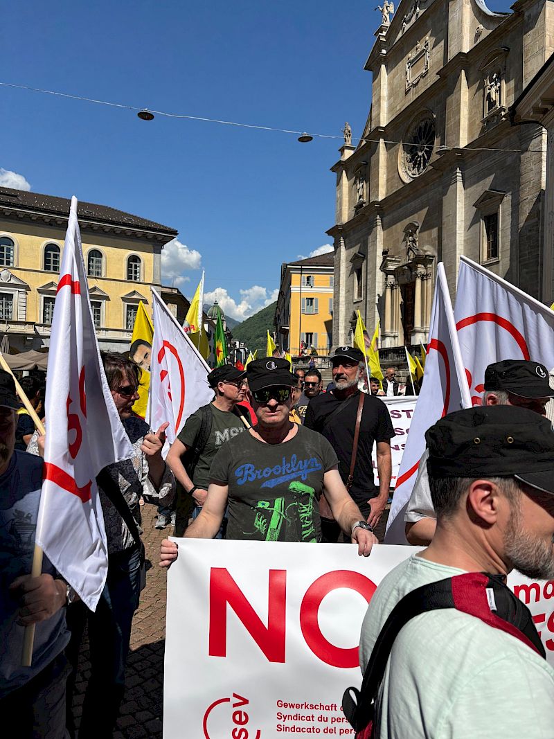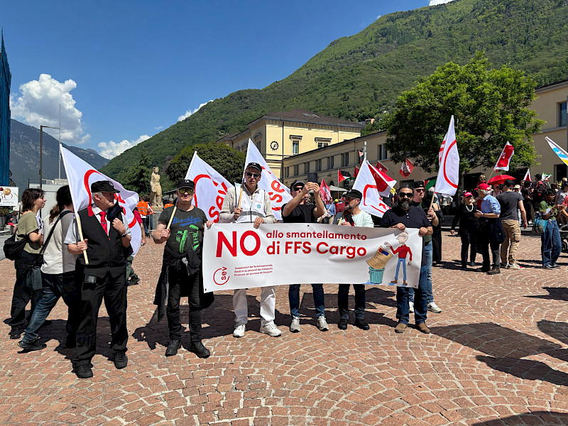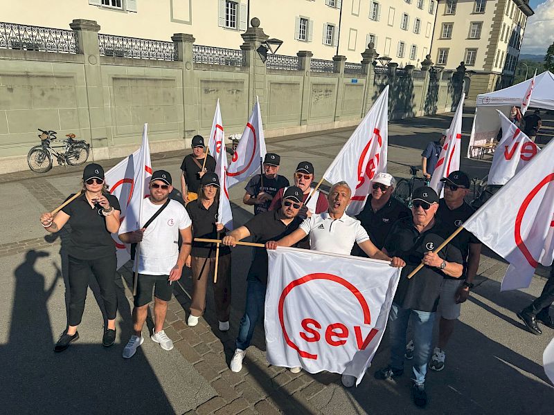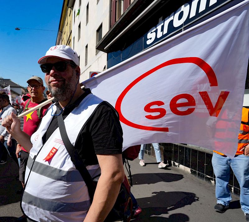Auch am 1. Mai 2025 war der SEV in der ganzen Schweiz präsent. Unter dem Motto «Solidarität statt Hetze» und «Stopp Gewalt – mehr Respekt für das Personal» gingen Tausende auf die Strasse.