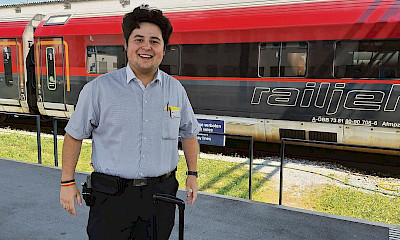 Die Leidenschaft für Züge liegt in der Familie. Sein Grossvater gründete in Schaan FL, wo Jeylan aufgewachsen ist, die fürstliche Eisenbahnromantikstiftung. Schon als Bub stand er mit grossen Augen neben den Schaffnern und durfte sogar selbst Billette kontrollieren. Später, in der Sekundarschule, war der Berufswunsch längst klar: Eisenbahn. Seine erste berufliche Station absolvierte Jeylan bei login, wo er die berufliche Grundbildung zum Detailhandelsfachmann EFZ absolvierte. 2022 folgte die Ausbildung zum Kundenbegleiter, die er 2023 abschloss. Seitdem arbeitet Jeylan auf den Schienen. «Ich wüsste nicht, was ich sonst tun sollte», sagt er. «Dass ich mein Hobby zum Beruf machen konnte, ist das Beste, was mir passieren konnte.» Um seine Leidenschaft zu teilen und sein Wissen weiterzugeben, engagiert er sich seit Sommer 2024 als Berufsbildner und begleitet Lernende.