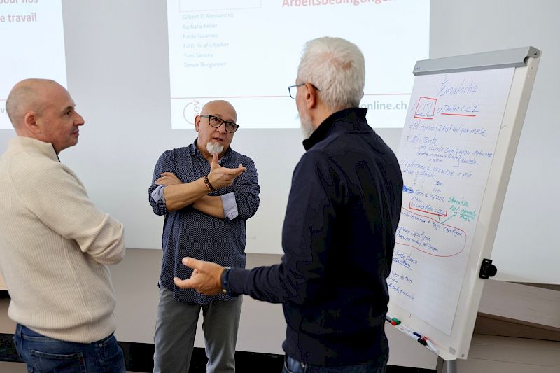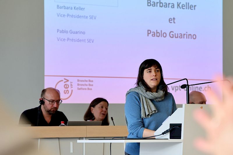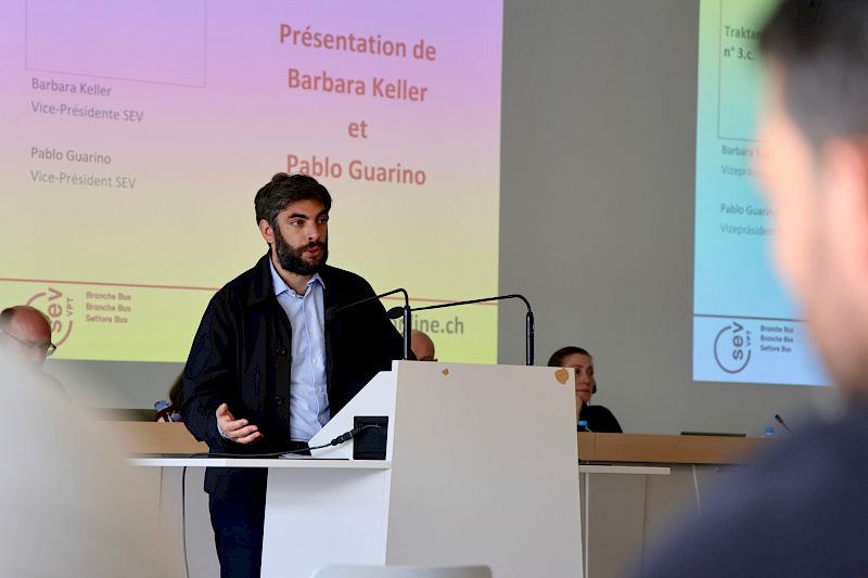 SEV-Vizepräsidentin Barbara Keller hielt zu den Lohnverhandlungen fest, dass der SEV trotz einer sehr geringen Teuerung im Jahr 2025 einige gute und insgesamt akzeptable Ergebnisse erzielen konnte. SEV-Vizepräsident Pablo Guarino erinnerte an die Rolle engagierter und aktiver Sektionen, die die Stärke des SEV ausmachen. Er stellte die noch vorläufigen Ergebnisse der Trapheac-Studie von Unisanté zur Gesundheit in der Busbranche vor. Die endgültigen Ergebnisse werden zwar erst am 24. April veröffentlicht, aber sie werden zweifellos in die Richtung gehen, die der SEV seit Jahren anprangert. Unisanté hat Burnouts und berufsbedingte Erschöpfungszustände untersucht, von denen viel zu viele unserer Kolleginnen und Kollegen betroffen sind. Diese Frage der Gesundheitsbedrohung und der damit zusammenhängenden Rolle der Arbeitsbedingungen führte zu spannenden Diskussionen und einem regen Austausch zwischen den Kolleginnen und Kollegen im Fahrdienst.
