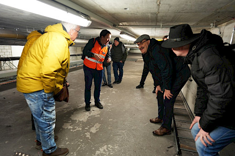 Während rund zwei Stunden erhalten die Teilnehmer:innen der Bahnhofsführung Einblicke, die auch für viele anwesende Bähnler:innen neu und ungewohnt sind. Zum Beispiel befindet man sich plötzlich in einem Zwischengeschoss mit Lüftungsrohren, durch das man nur gebückt wandeln kann, weil man hier Platz sparen musste. Beeindruckend ist die Logistik, die den Betrieb des grössten Bahnhofs der Schweiz mit rund einer halben Million Pendler:innen pro Tag am Laufen hält.