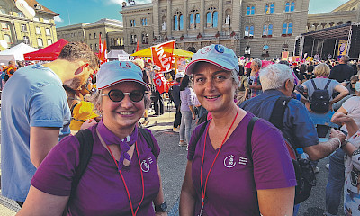 Ein grosses Thema ist nach wie vor die unbezahlte Care-Arbeit. Wir konnten nicht zuletzt auch während dem Lockdown im Frühjahr 2020 sehen was geschieht, wenn Kitas und Grosseltern als Betreuungsinstitutionen wegbrechen. Dies löste in vielen Familien teils grosse Krisen aus. Wir Gewerkschaftsfrauen sind der Meinung, dass Kinderbetreuung Teil des Service public sein muss. Denn nur so kann die Chancengleichheit von jedem Kind optimal gefördert werden. Ausserdem ermöglicht unsere Vision von Kinderbetreuung inkl. Tagesschulen als Service public beiden Elternteilen, stressfreier ihre Erwerbsarbeit nach der Geburt eines Kindes wieder aufzunehmen. Uns Gewerkschaftsfrauen* ist hierbei vor allem der Aspekt der ökonomischen Unabhängigkeit der Frauen sehr wichtig. Wenn eine Frau finanziell unabhängig ist und ebenfalls in die Familienkasse einbezahlt, steht sie auf Augenhöhe mit ihrem Partner und durchbricht das Machtgefälle, das sonst immer vorhanden ist.