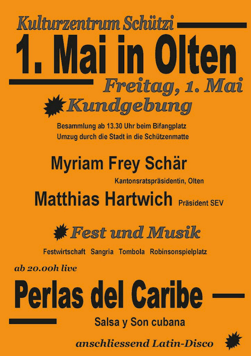 Der SEV ist an folgenden Orten präsent am 1. Mai: