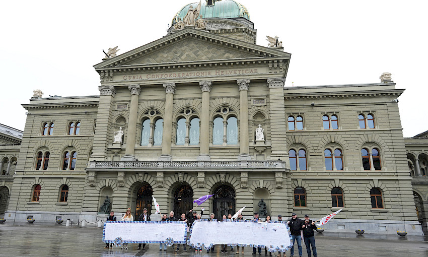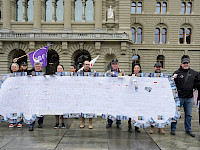 Heute hat die Gewerkschaft des Verkehrspersonals SEV der eidgenössischen Finanzverwaltung einen Bus und einen Zug aus Protestpostkarten überreicht. Sie protestiert damit gegen geplante Sparmassnahmen beim regionalen Personenverkehr. Mitarbeiterinnen und Mitarbeiter des öffentlichen Verkehrs befürchten, dass sie die Suppe auslöffeln müssen, wenn im öV gespart wird. Deshalb lehnen sie sämtliche Sparmassnahmen im öffentlichen Verkehr ab.