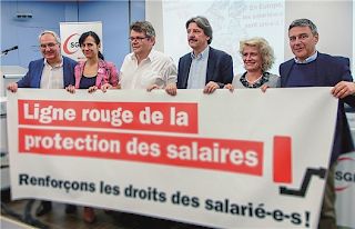 Selon le ministre des Affaires étrangères Ignazio Cassis, le «principal point d’achoppement» concernant l’accord-cadre avec l’UE reste l’exigence européenne d’affaiblir les mesures d’accompagnement et de les soumettre à la Cour de justice européenne. L’assemblée des délégué-e-s de l’USS a adopté une résolution affirmant qu’elle n’acceptait aucune réduction des mesures d’accompagnement. Elle a demandé au contraire que la protection des salaires et des conditions de travail contre le dumping soit améliorée en Suisse comme dans toute l’Europe.