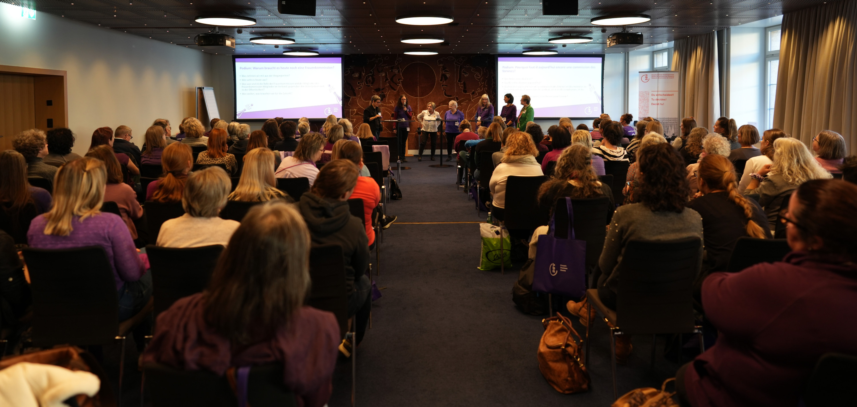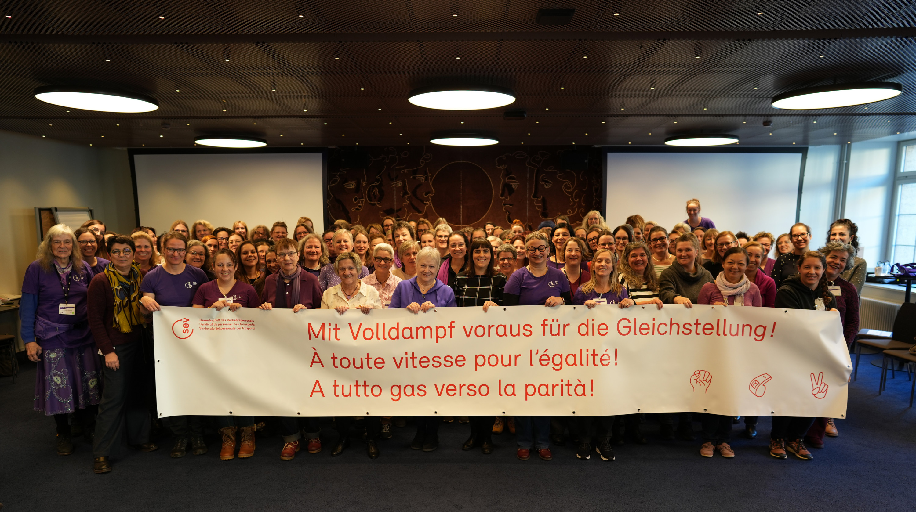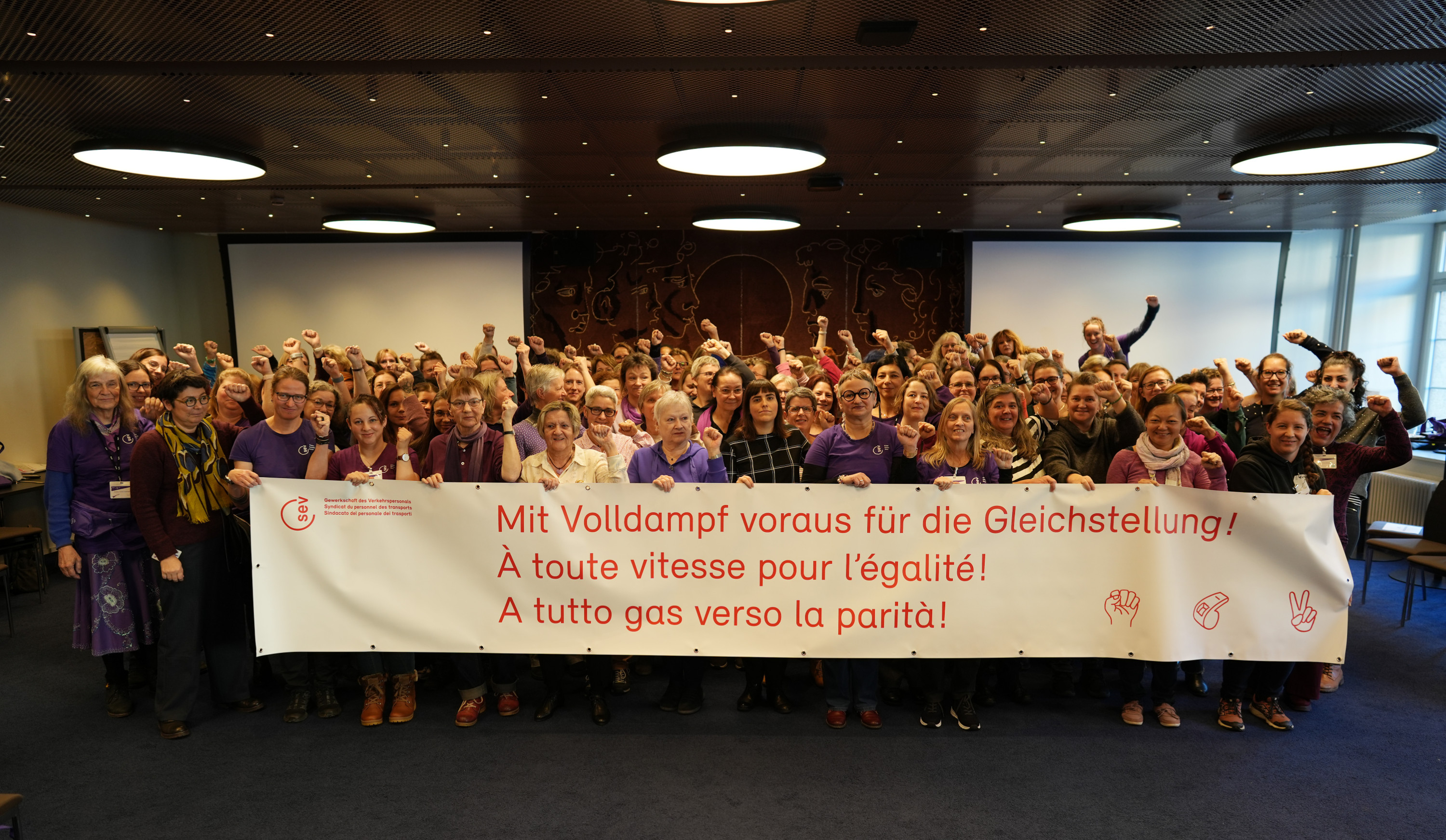 120 participant·es se sont réuni·es lors de la journée jubilaire de la Commission Femmes du SEV à l’Hôtel Bern. La journée a permis de revenir sur 40 ans de lutte pour l’égalité, tout en regardant l’avenir avec combativité.