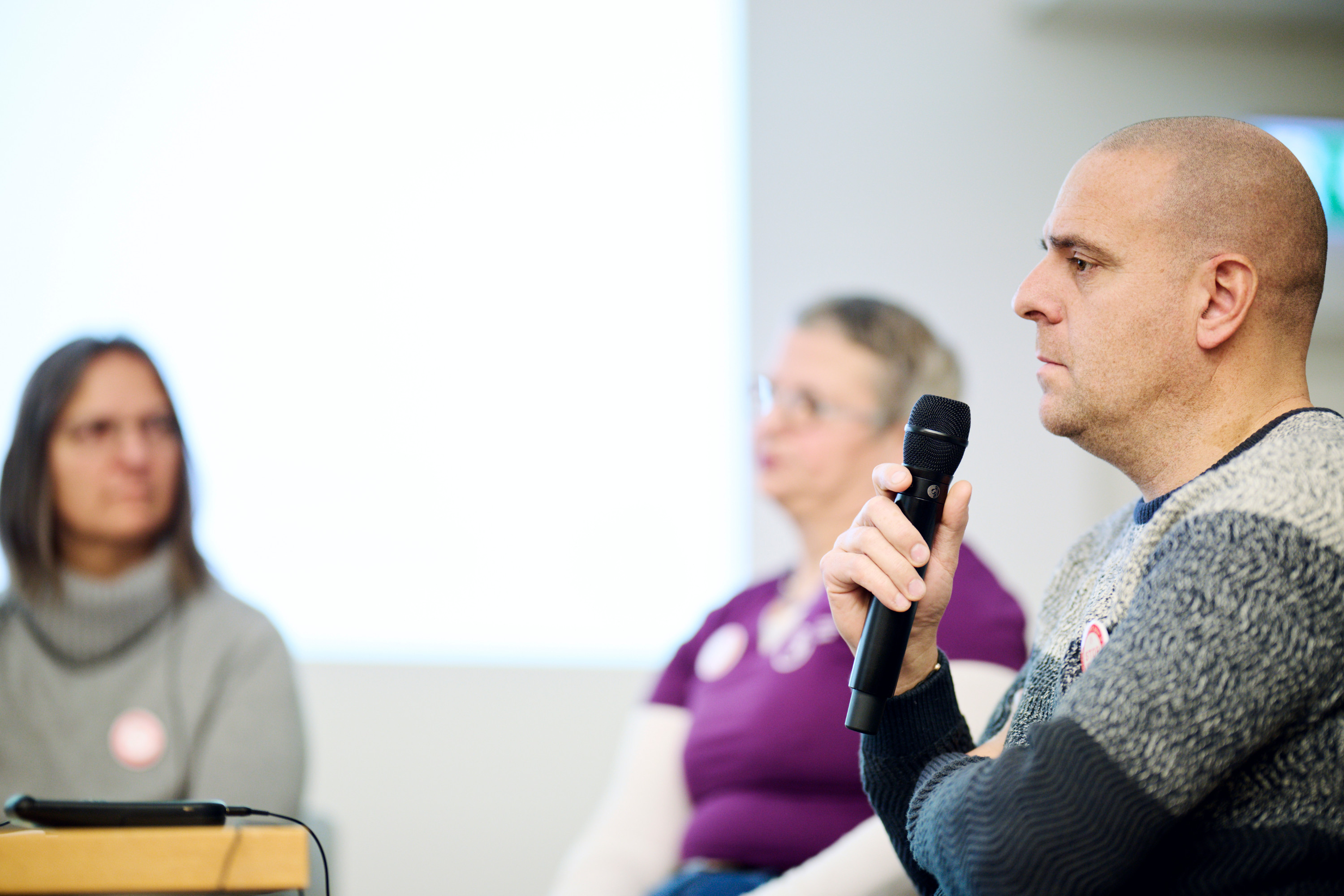 « Dans les transports publics, la sécurité doit avoir la priorité – pour les clientes et clients, mais aussi pour le personnel. Ensemble avec les entreprises leaders du secteur, nous visons une culture de respect mutuel, tant pour les voyageurs que pour les employés », a déclaré le président du SEV, Matthias Hartwich, devant les 150 invités présents. Il a ajouté : « Notre objectif est un dialogue entre salarié·es, entreprises, autorités de sécurité et politique, afin que personne n’ait peur lorsqu’il ou elle monte dans un bus, un bateau, un tram ou un train. » Le directeur de l’Union des transports publics (UTP), Ueli Stückelberger, représentant la partie patronale, a souligné : « La violence contre le personnel comme contre les voyageurs est intolérable. C’est pourquoi les entreprises de transport et les partenaires sociaux envoient, avec la rencontre d’aujourd’hui, un signal clair contre la violence. »