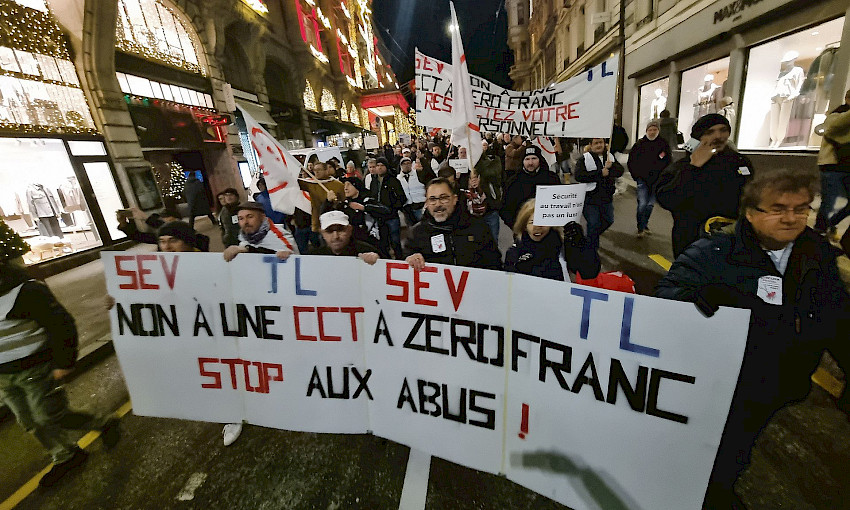 Dans le cortège, plusieurs centaines de collègues des tl ont dénoncé le fait que les améliorations des conditions de travail ne devraient pas coûter un seul centime, selon un accord préalable à la négociation que la direction voulait faire signer aux syndicats.