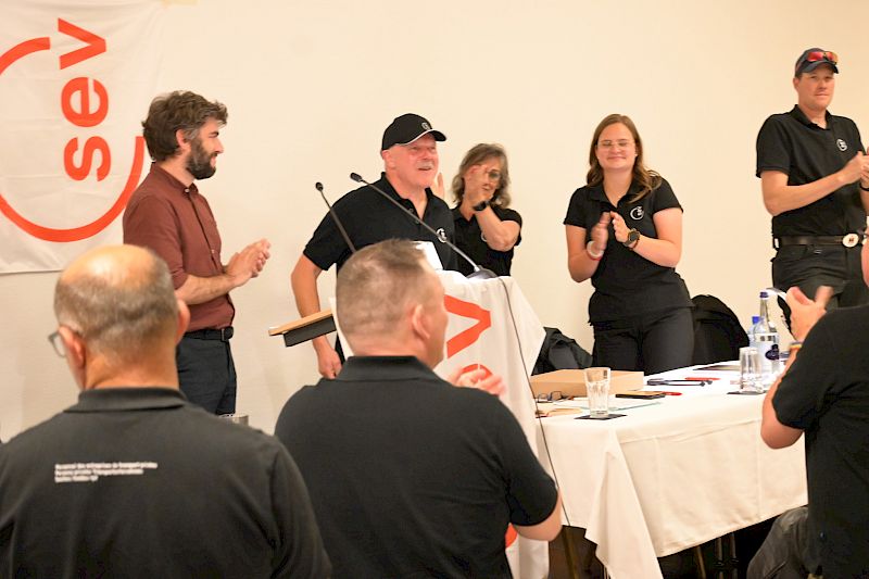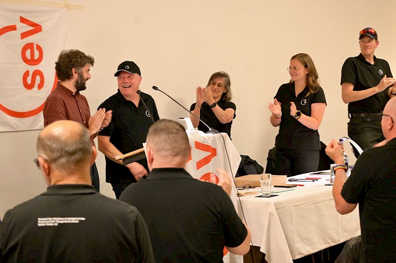Fritz a rappelé l’importance pour lui des valeurs de loyauté, solidarité, tolérance et courage civil qui ont guidé son action jusqu’à la signature de la CCT qui entrera en vigueur au 1er janvier 2026. Patricia Alcaraz sera désormais la secrétaire syndicale responsable des tpf au SEV. Pablo Guarino occupera une autre fonction au SEV.